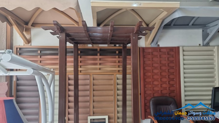 - المظلات الخشبية: تضفي لمسة من الدفء والأناقة الطبيعية على المكان، وتناسب الحدائق والمساحات المفتوحة. يمكن تصميمها بأشكال وتصاميم مختلفة لتتناسب مع الديكور العام.