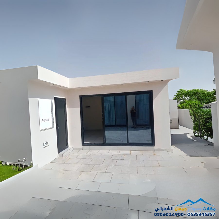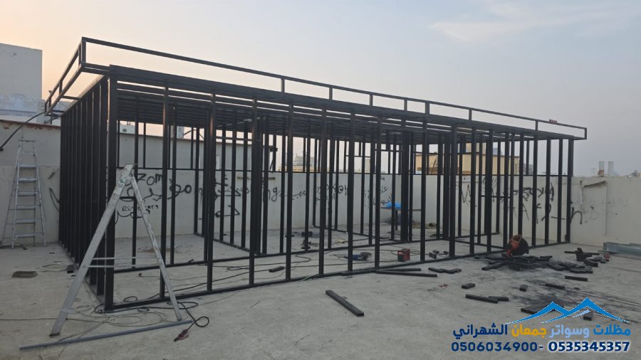 هيكل الملحق والسقف: يتم بناء هيكل الملحق المعدني باستخدام الفولاذ الخفيف (LGS)، ويُركب الساندوتش بانل للسقف لضمان العزل التام ومقاومة التسرب.