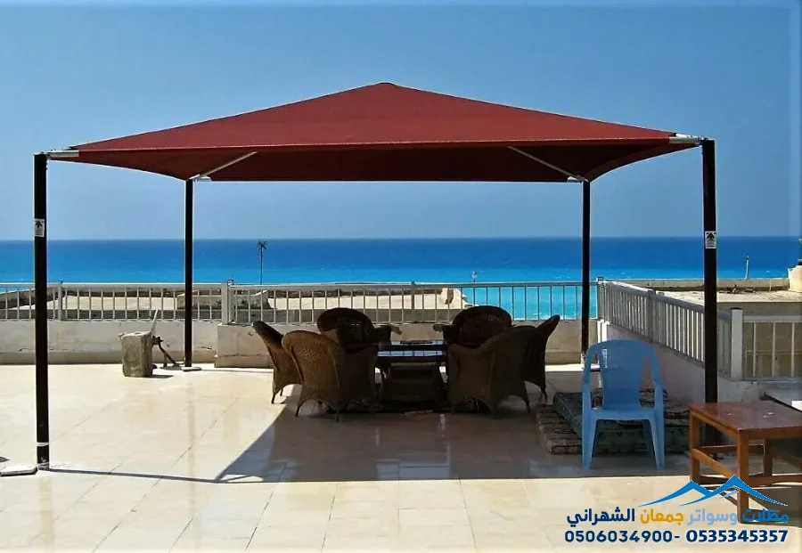 3. مظلات حديد أو ألمنيوم مغطاة بالقماش الحراري