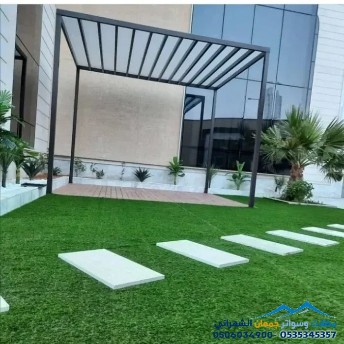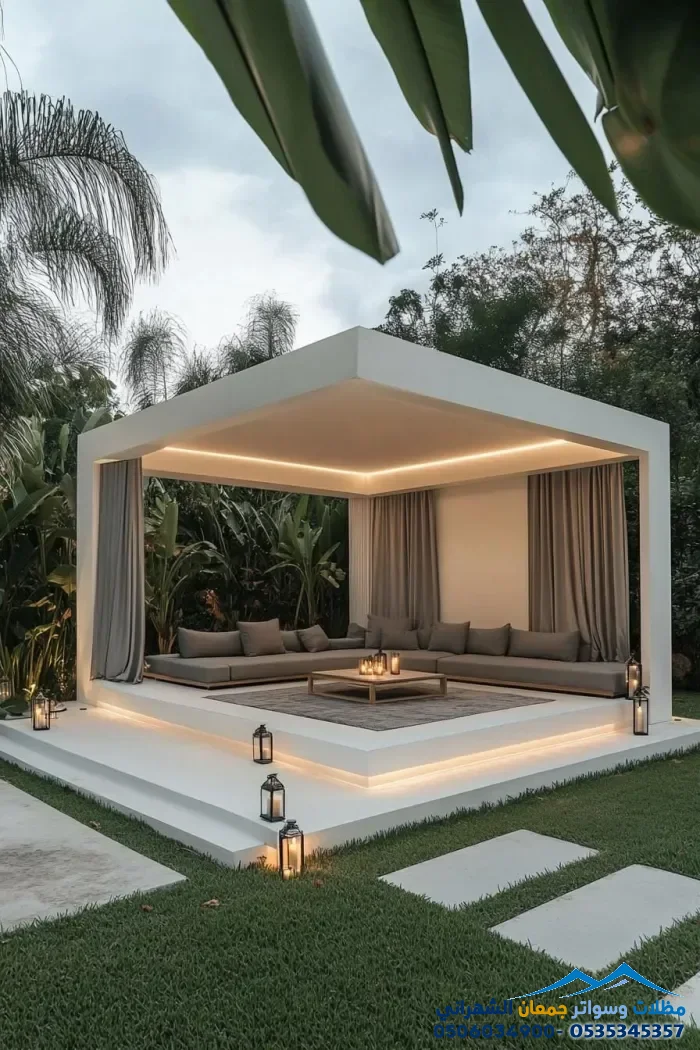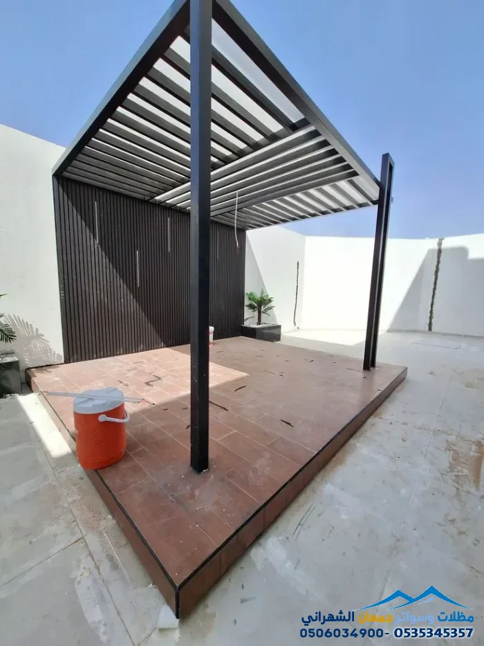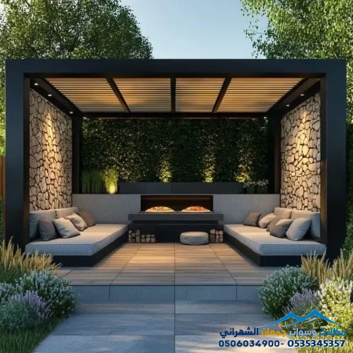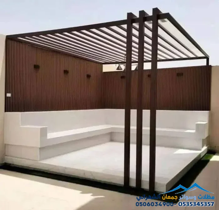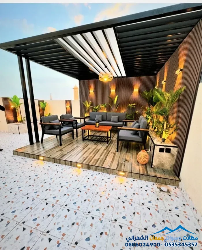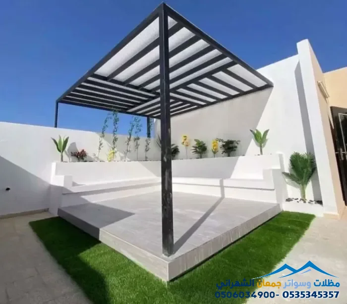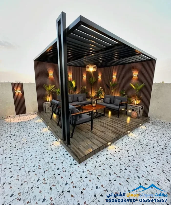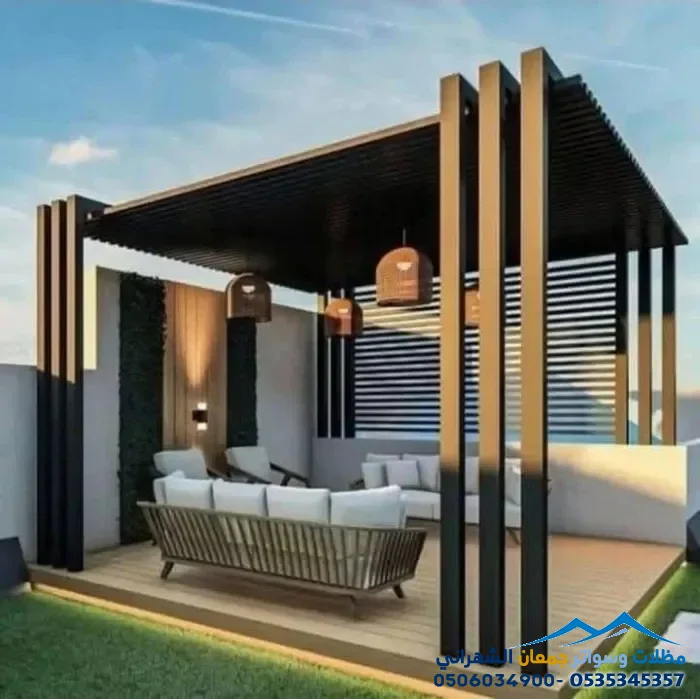 - المظلات (البرجولات): ضع الجلسة تحت برجولة حديد متناسقة معها في التصميم واللون لتوحيد المظهر العام.