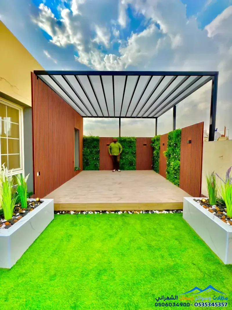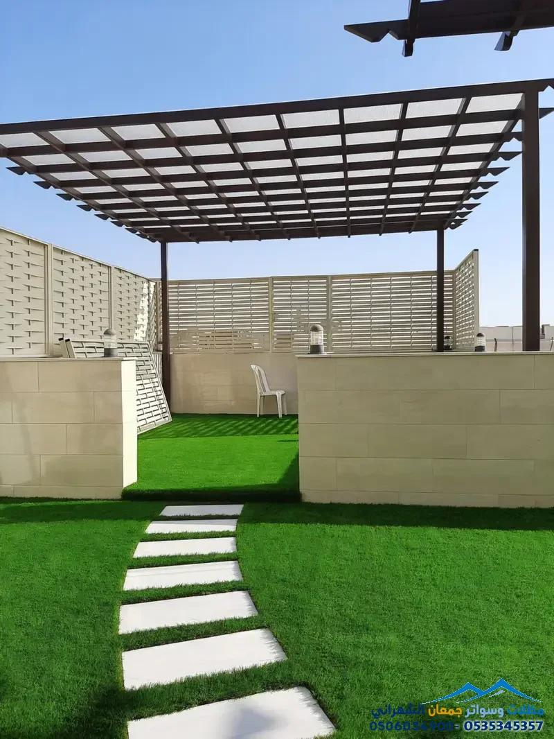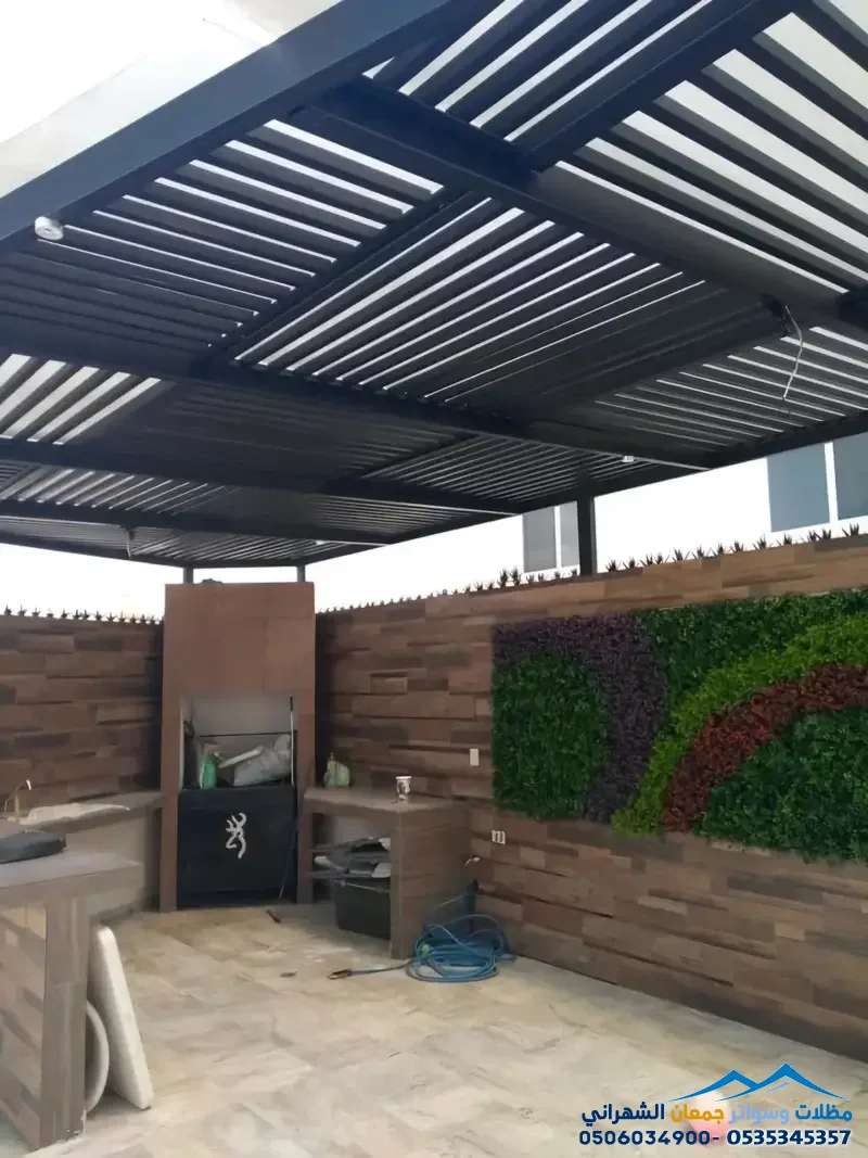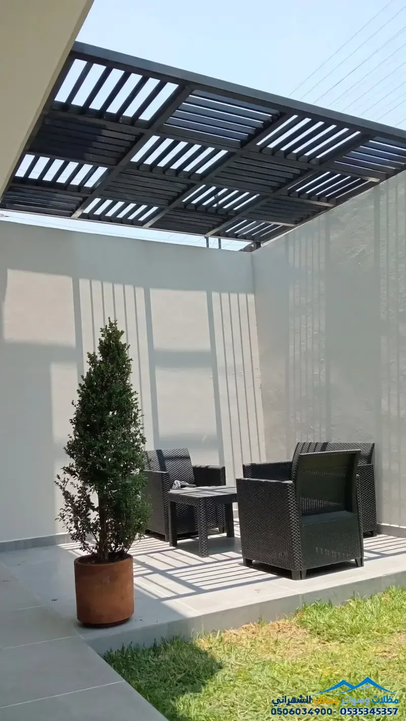 - المظلات والبرجولات: لحماية الجلسة من الشمس المباشرة وإعطائها طابعاً خاصاً.