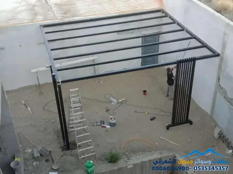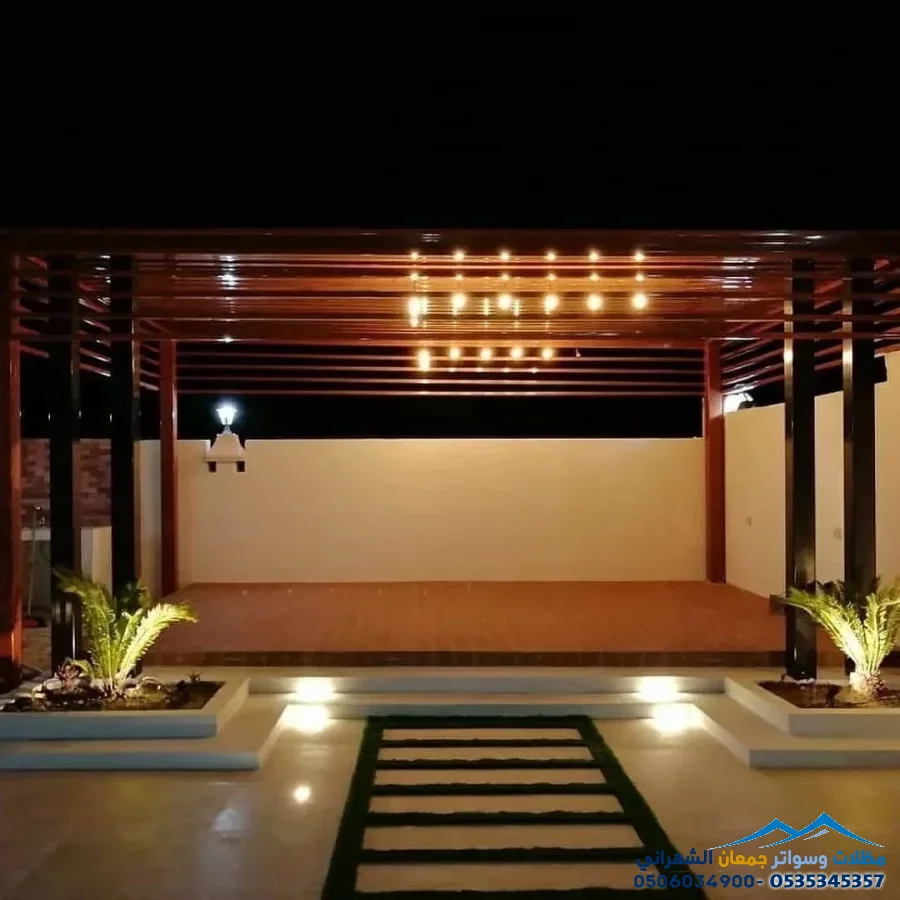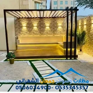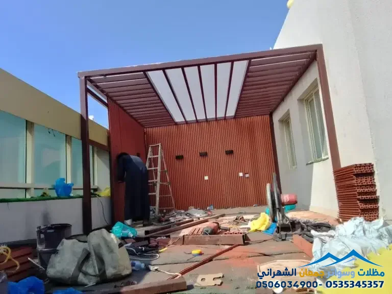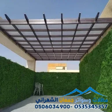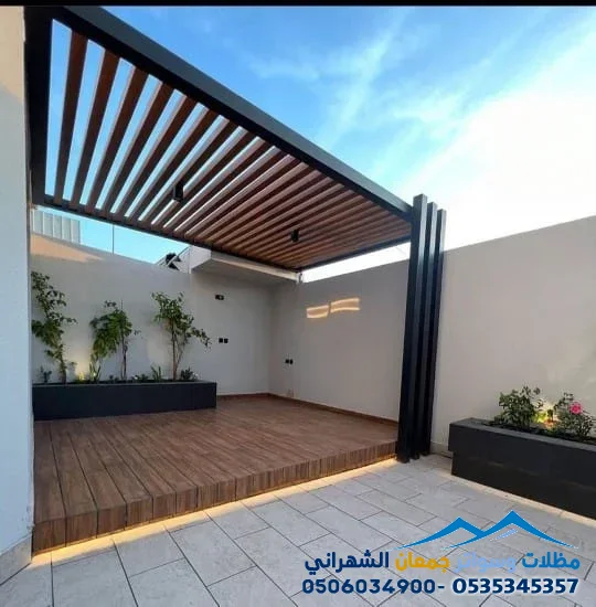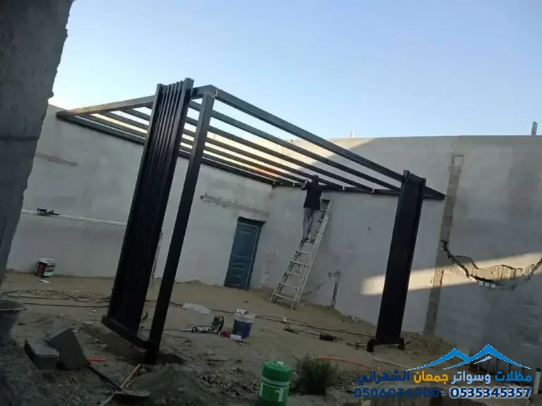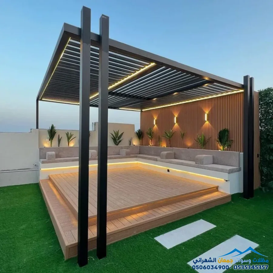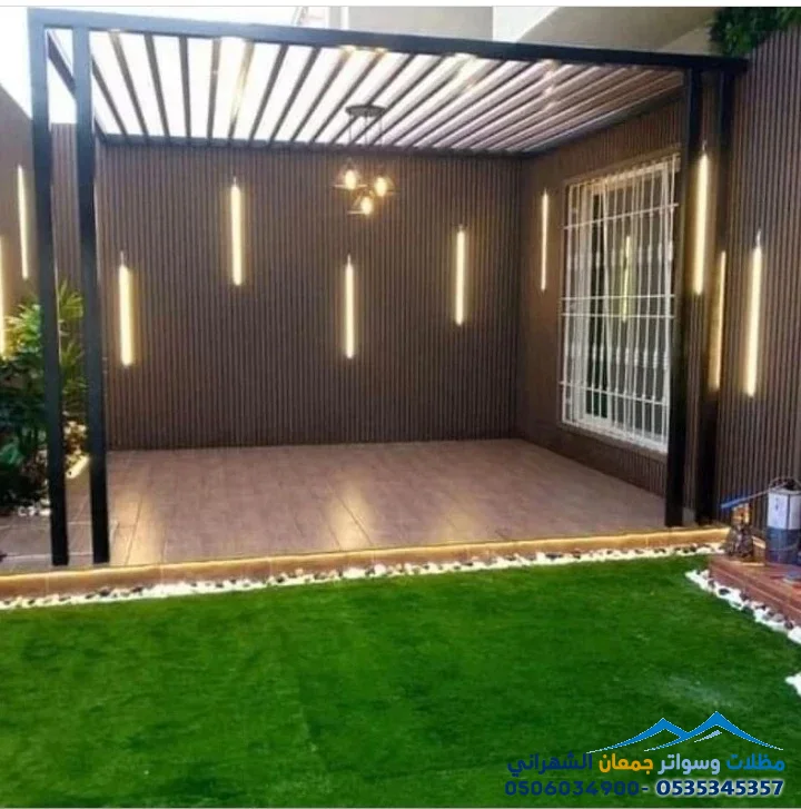 - المظلات: سواء كانت خشبية، حديدية، أو قماشية (PVC)، فهي ضرورية للحماية من أشعة الشمس المباشرة.