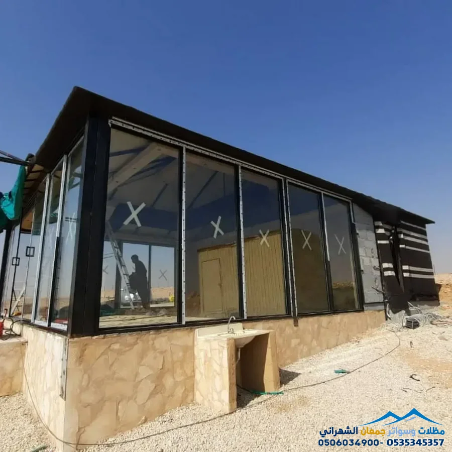 - التشطيب: تركيب الديكورات الداخلية (بيت الشعر) والدهانات الخارجية.